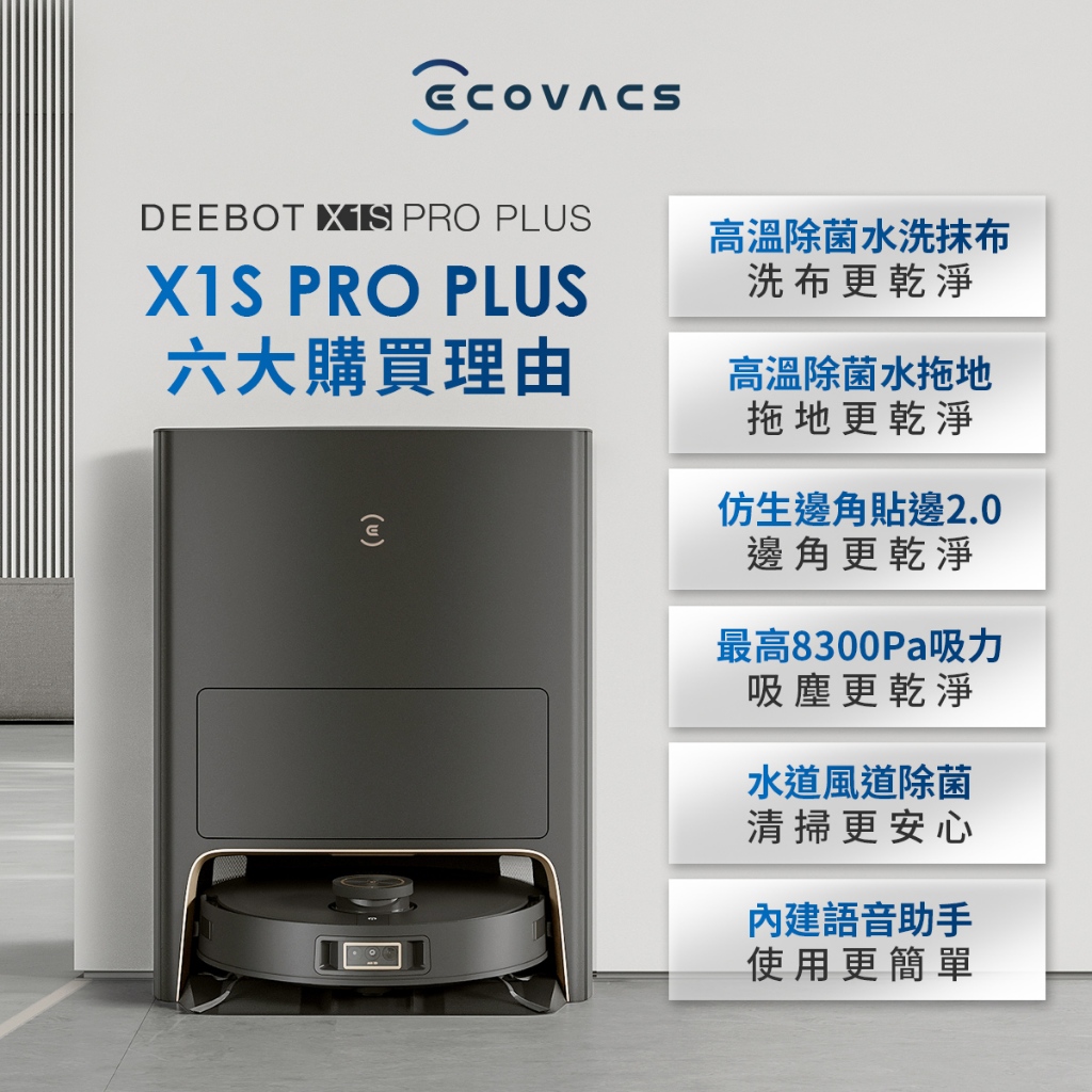 ECOVACS科沃斯 X1S PRO PLUS 熱水銀離子洗拖進化旗艦掃拖機器人X1S PRO PLUSVacuum Cleaners & Floor Care AppliancesECOVACS 科沃斯 官方旗艦店