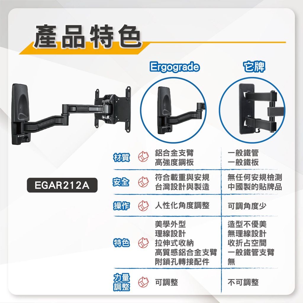 ErgoGrade 22~52吋 拉伸式 EGAR212A 雙懸臂 液晶電視螢幕支架 壁掛式 電視支架 顯示器支架 現貨ErgoGrade 22~52吋 拉伸式 EGAR212A 雙懸臂 液晶電視螢幕支架 壁掛式 電視支架 顯示器支架 現貨TV BracketsErgoGrade官方旗艦店