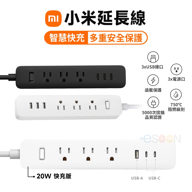 小米延長線【現貨 免運】20W 延長線 台灣公司貨 USB 延長線 米家 插座 多孔延長線 自動斷電 豆腐頭 快充頭小米延長線 標準版 黑色|小米延長線 標準版 白色|小米延長線 20W 快充版Electric Sockets & Extension Cordsesoon量販3C電玩商城