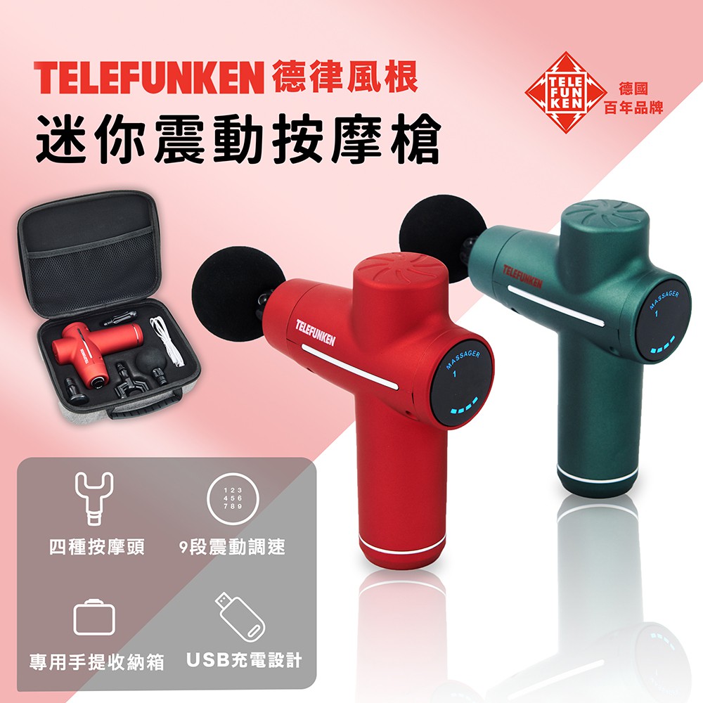 【TELEFUNKEN】德律風根迷你震動按摩槍-森林綠/玫瑰紅 筋膜槍 肌肉按摩 九段震動調速森林綠|玫瑰紅OthersDiscovery Adventures 探索旗艦店