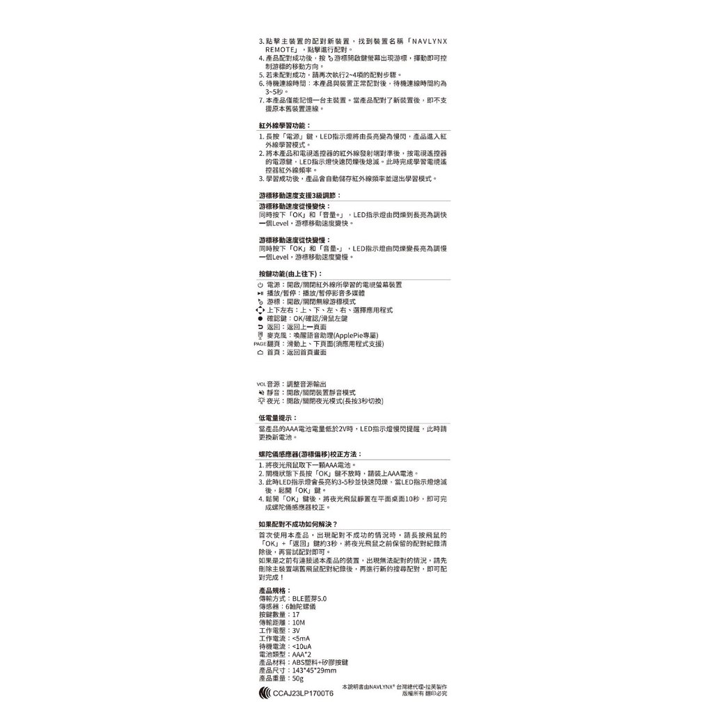 NAVLYNX藍牙夜光飛鼠遙控器ApplePie專用(原廠公司貨)NAVLYNX藍牙夜光飛鼠遙控器ApplePie專用(原廠公司貨)Digigomart