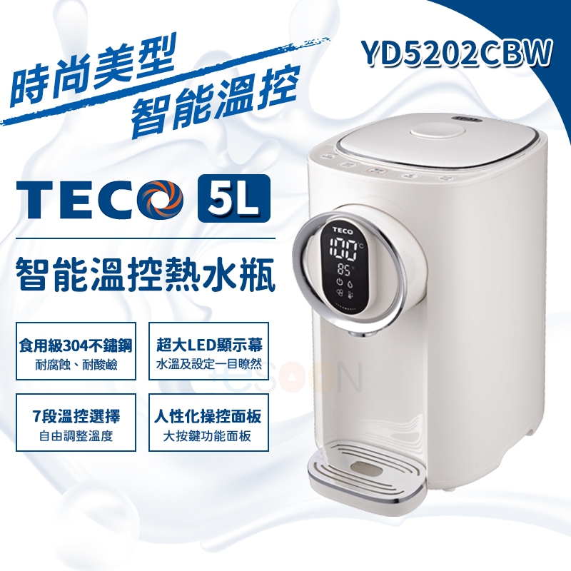 TECO東元 5L智能 溫控熱水壺 YD5202CBW【現貨 免運】304 定溫 熱水壺 保溫快煮壺 電熱水壺 宿舍必備智能溫控熱水瓶Kettlesesoon量販3C電玩商城
