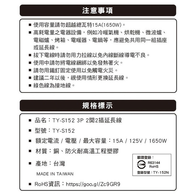 東億3孔2開關2插座延長線 TY-S152-6尺/TY-S152-8.25尺TY-S152-6尺|TY-S152-8.25尺Electric Sockets & Extension Cordseasy to buy『爽爽買』