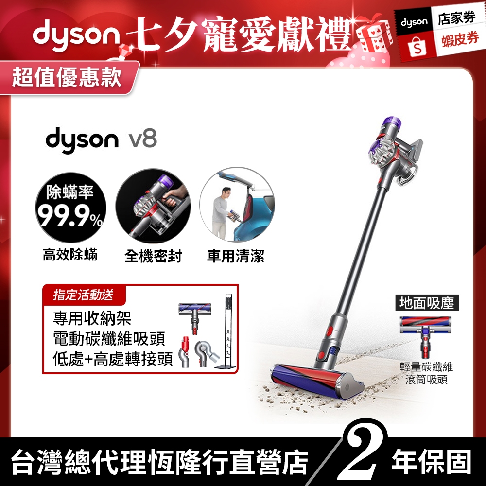 Dyson V8 SV25 除蟎率99.9%雙主吸頭無線手持吸塵器 雙主吸頭【毛小孩家庭推薦】 2年保固贈收納架+高處+低處轉接頭+碳纖維吸頭|🔥七夕限定,贈收納架+碳纖維吸頭|活動設定Vacuum Cleaners & Floor Care Appliancesdyson戴森|恆隆行官方旗艦館