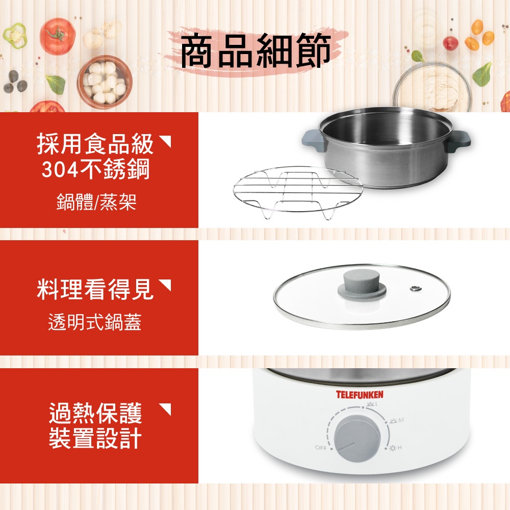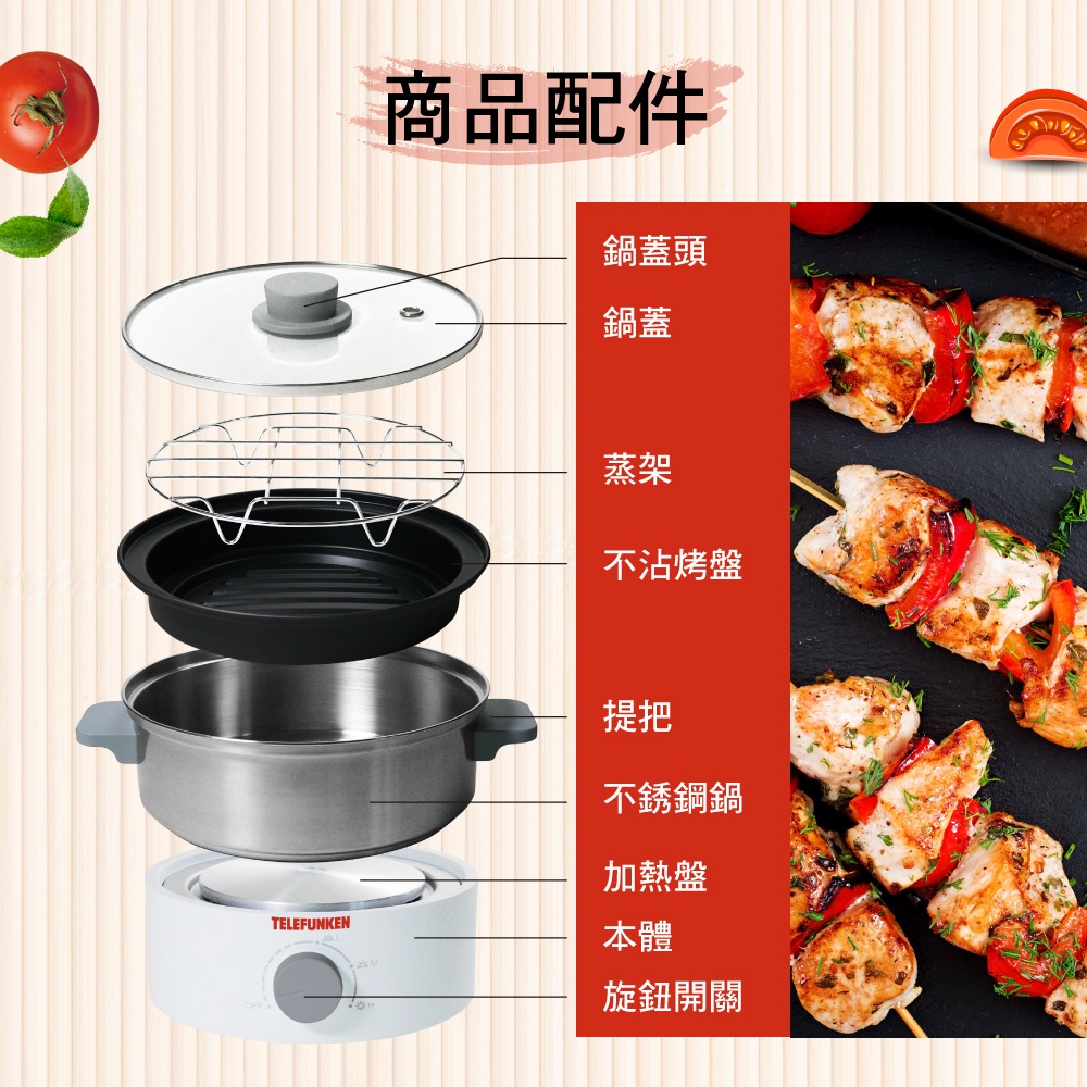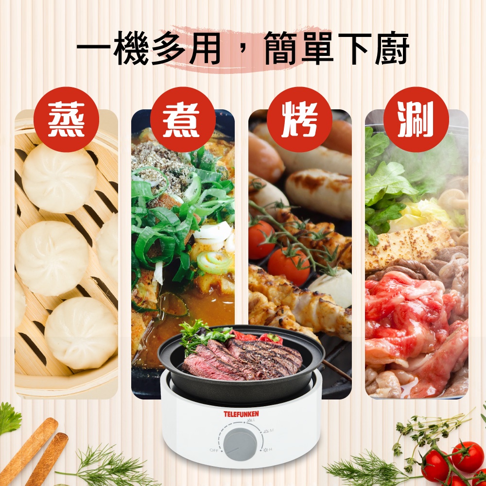 【TELEFUNKEN】德律風根蒸煮烤調理鍋LT-MCP2402M [福利品] 電火鍋 蒸煮鍋 電烤盤【TELEFUNKEN】德律風根蒸煮烤調理鍋LT-MCP2402M [福利品] 電火鍋 蒸煮鍋 電烤盤Multi-function CookersDiscovery Adventures 探索旗艦店