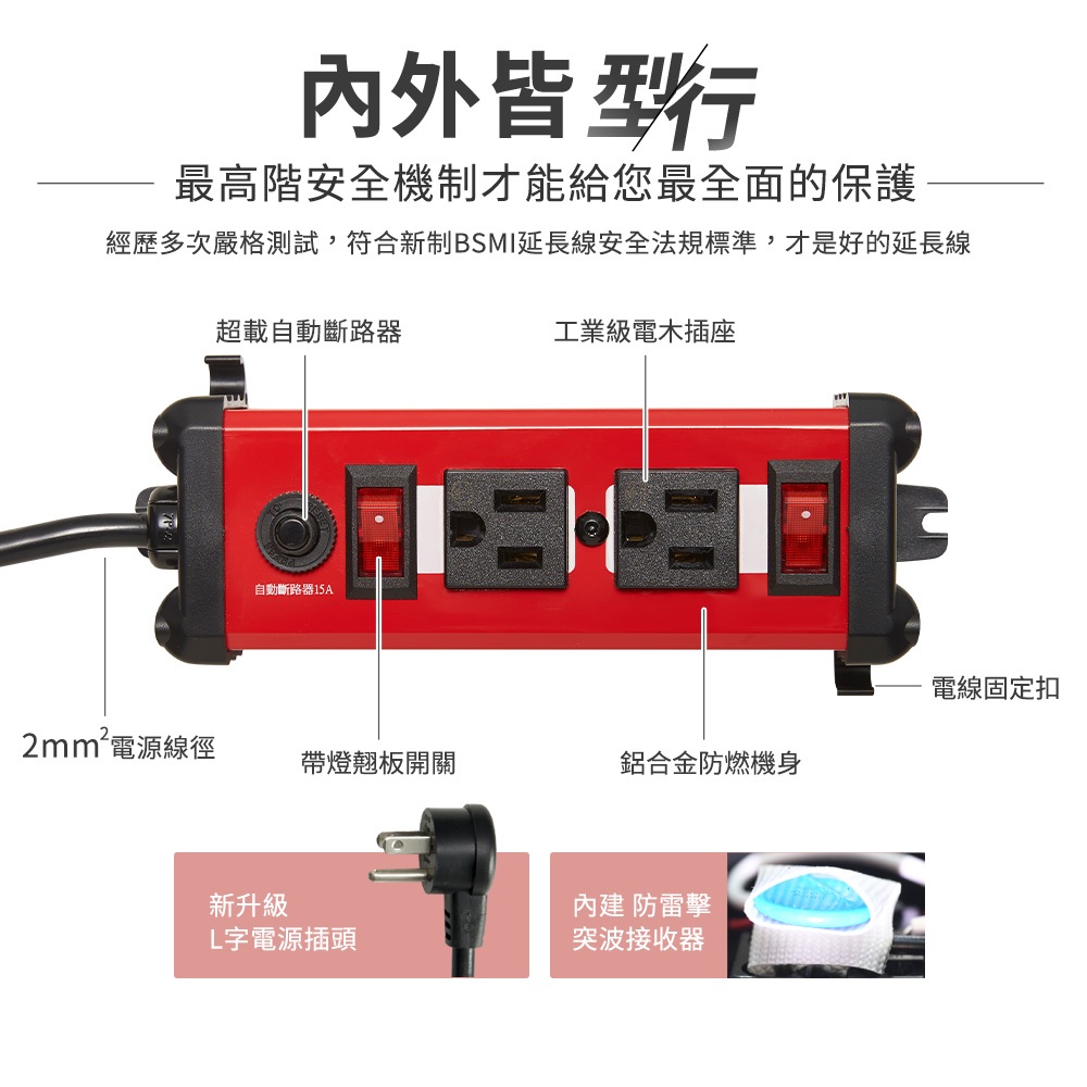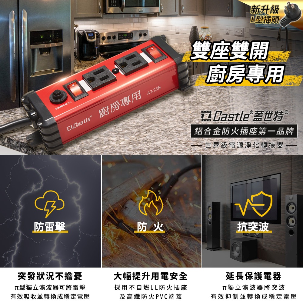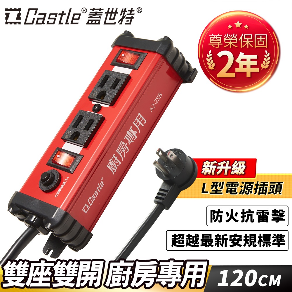 【全網最低價】Castle 蓋世特 3孔2座 廚房專用 鋁合金電源突波保護插座/延長線 120CM-紅色現貨-紅色Electric Sockets & Extension CordsDeseno 笛森諾亞洲旅遊精品旗艦店