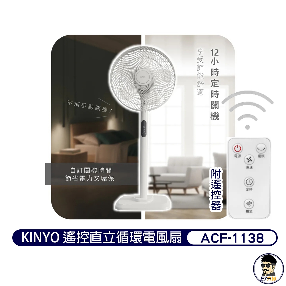 免運 KINYO 電子遙控 14吋 直立循環電風扇 遙控定時 附遙控器 ACF-1138【E7大叔】全新品CoolingE7uncle 3C智能選物館