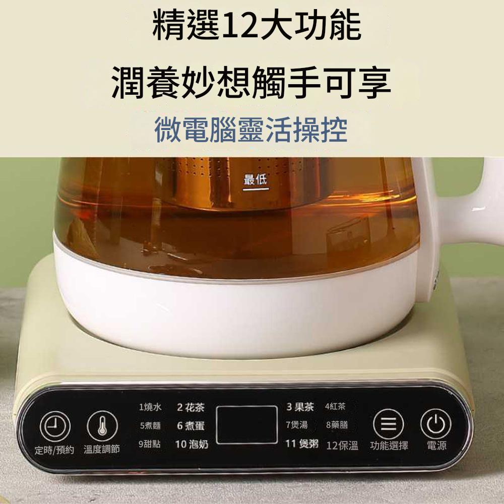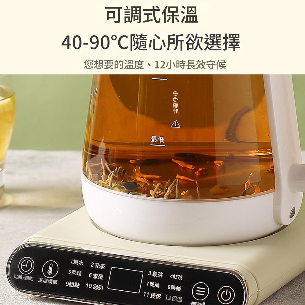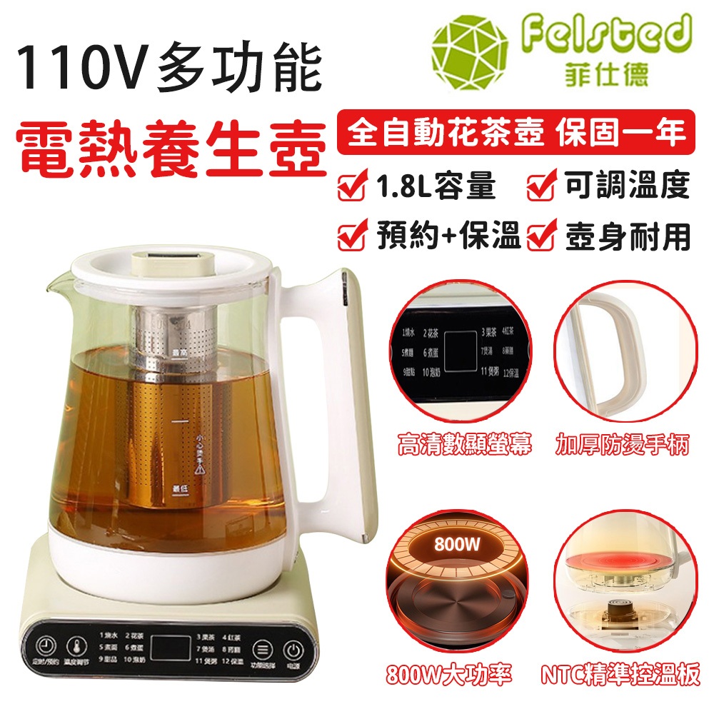 【Felsted 菲仕德】110V多功能電熱養生壺 家用煎藥壺 宿舍煮茶器1.8L容量 智能恆溫玻璃快煮壺白色|白色(濾網+燉盅)KettlesFelsted菲仕德官方旗艦店_家電館