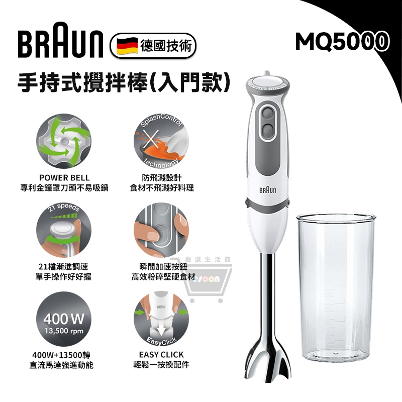 德國百靈 BRAUN MQ5000 入門款 手持式攪拌棒【現貨 免運】攪拌 打蛋 多功能食物攪拌棒 附配件 十倍蝦幣MQ5系列 入門款(附雙配件)Mixersesoon嚴選生活館| 十倍蝦幣回饋