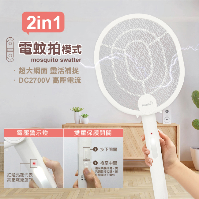 【DANBY丹比】紫光UV誘蚊折疊式電蚊拍(DB-8MS)|買1送1 捕蚊拍 捕蚊燈 可照明 可驗鈔1入組|買1送1 (2入組)OthersDANBY丹比家電旗艦館
