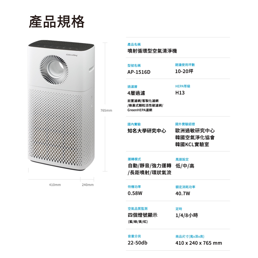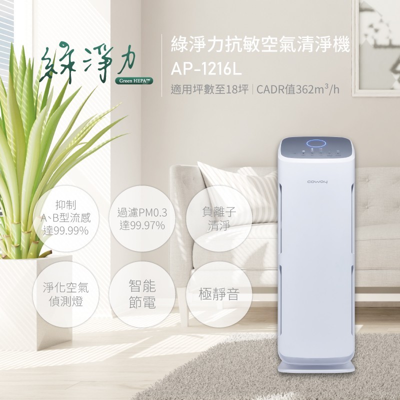 Coway 20+10坪雙機組空氣清淨機 AP 1516 D+AP 1019 C抑制流感 一房一廳熱銷組純淨白Air TreatmentCoway 台灣官方商店