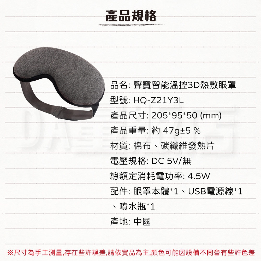 SAMPO 熱敷眼罩 3D溫控 蒸氣眼罩 聲寶 HQ-Z21Y3L USB眼罩 熱敷 遮光 眼罩SAMPO 熱敷眼罩 3D溫控 蒸氣眼罩 聲寶 HQ-Z21Y3L USB眼罩 熱敷 遮光 眼罩OthersDA量販店