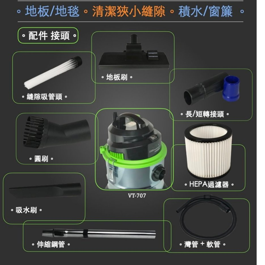 Dennys 吸塵器配件 適用型號VT-707/VT-808/CA-908B配件八 過濾網組(CA-908B)|配件一 HEPA濾芯(VT-707專用)|配件二 過濾袋(VT-707專用)|配件三 地板刷|配件四 圓刷|配件五 吸水刷(縫隙刷)|配件六 彎管+軟管(CA-908B)|配件七 氣動刷頭(CA-908B除蟎用)|配件九 伸縮鋼管(請選宅配通或嘉里快遞)|配件六 彎管+軟管(VT-707)|配件六 彎管+軟管(VT-808)Vacuum Cleaners & Floor Care AppliancesDennys丹尼斯旗艦館