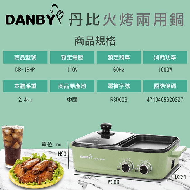 【DANBY 丹比】雙溫控火烤兩用輕食鍋(DB-1BHP)|電烤盤 電火鍋 料理鍋 美食鍋 火烤鍋【DANBY 丹比】雙溫控火烤兩用輕食鍋(DB-1BHP)|電烤盤 電火鍋 料理鍋 美食鍋 火烤鍋Multi-function CookersDANBY丹比家電旗艦館