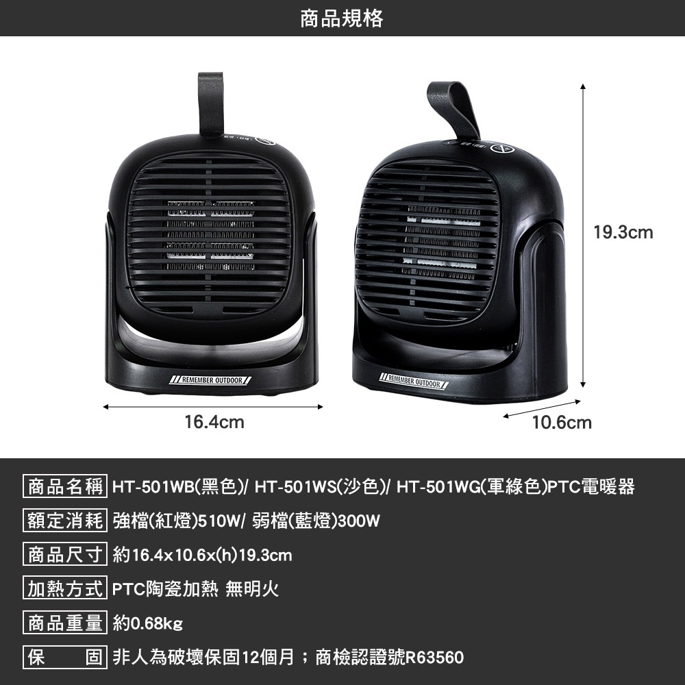 樂活不露 一代 二代 510W PTC可吊掛式電暖器 電暖器 小暖爐 桌上型 露營二代小芯機HT-501WB(黑色)|二代小芯機HT-501WS(沙色)|二代小芯機HT-501WG(綠色)|HT-500WB(黑色)|HT-500WG(軍綠色)|HT-500WS(沙色)HeatersCAMP WORLD 逐露 天下 露營 登山 生活 商城旗艦店