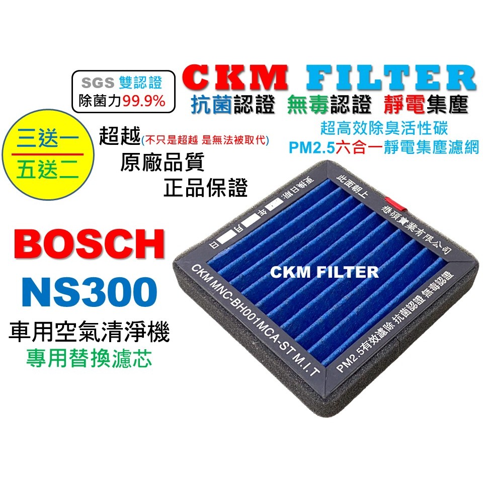 【CKM】6層 抗菌 BOSCH 博世 NS300 車用空氣淨化器 醫療級 無毒認證 活性碳濾芯 靜電濾網 NAF-80藍色抗菌認證無毒認證活性碳靜電強效濾芯|綠色PM0.3高效HEPA濾芯Air TreatmentCKM FILTER 懋碩實業有限公司