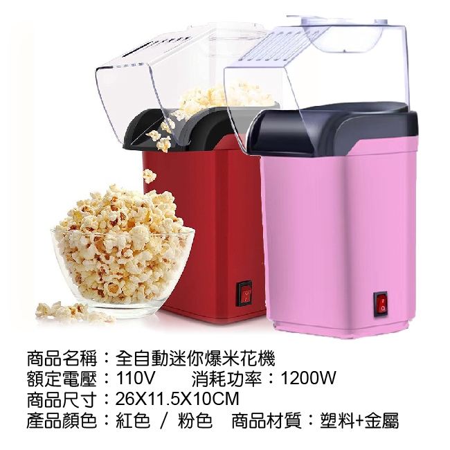 臺灣現貨(隔日出貨)【JUSTCOOK 廚藝寶】迷你家用全自動爆米花機/料理機/點心機/米花機/二色任選紅色|粉紅|希爾頓純水濕紙巾3包Specialty CookwareCERES席瑞絲批發團購