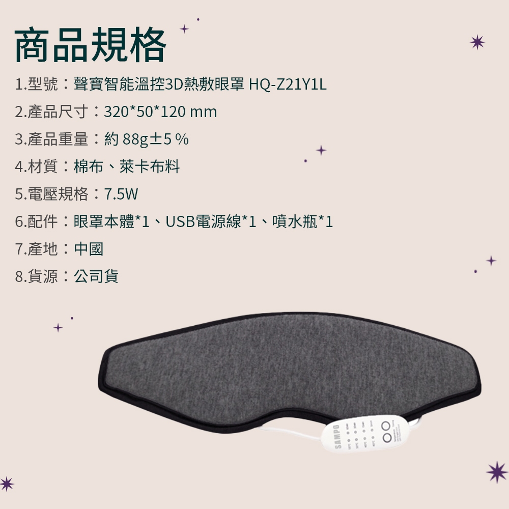 SAMPO 熱敷眼罩 溫控 3D 蒸氣眼罩 HQ-Z21Y1L 聲寶 遮光 紓壓 熱敷 眼罩SAMPO 熱敷眼罩 溫控 3D 蒸氣眼罩 HQ-Z21Y1L 聲寶 遮光 紓壓 熱敷 眼罩OthersDA量販店