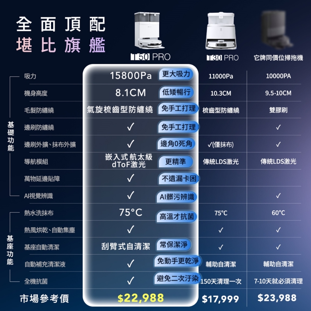 ECOVACS 科沃斯 T50 PRO OMNI超薄全覆蓋全能旗艦掃拖機器人(超薄81MM/高溫洗烘/萬物沿邊)T50 PRO OMNIVacuum Cleaners & Floor Care AppliancesECOVACS 科沃斯 官方旗艦店
