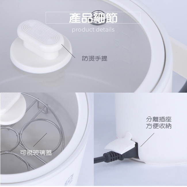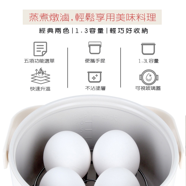 Jinkon晶工 1.3L多功能料理電碗 湯鍋 蒸蛋 JK-618白色|綠色Multi-function Cookerseasy to buy『爽爽買』