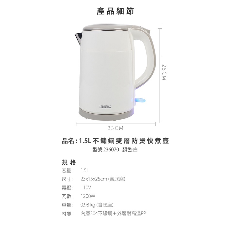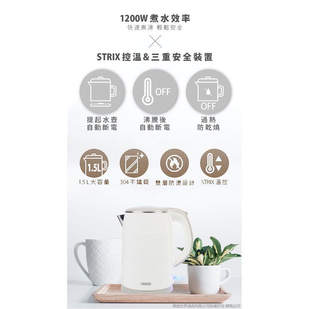 送英式陶瓷濾杯~PRINCESS荷蘭公主 1.5L不鏽鋼防燙快煮壺(白) 236070送英式陶瓷濾杯~PRINCESS荷蘭公主 1.5L不鏽鋼防燙快煮壺(白) 236070Kettlese趣購商城