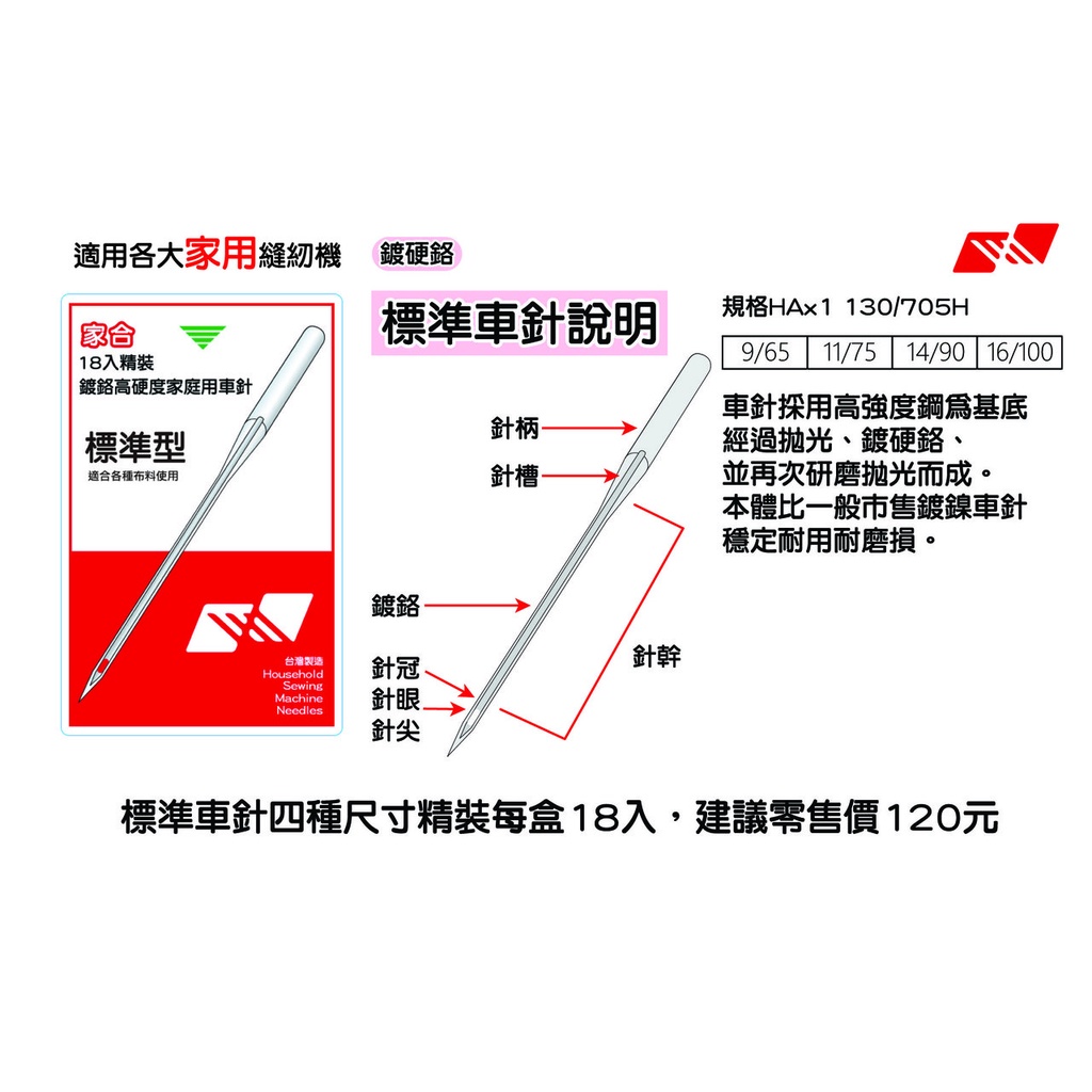 鍍鉻高硬度家庭用車針-標準型 縫紉機車針 車針 機針 18入