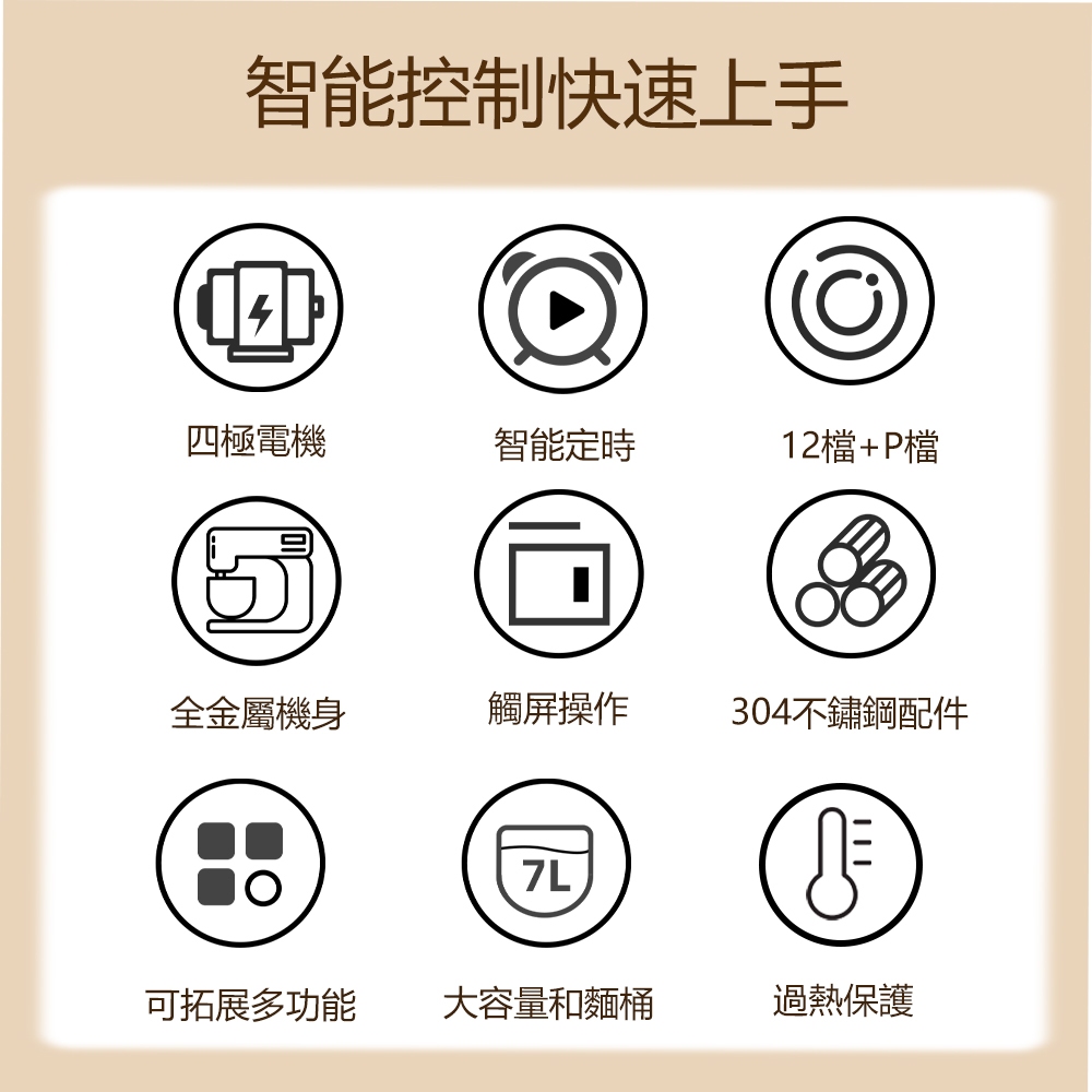 【Felsted 菲仕德】和麵機 廚師機 攪拌機 麵團機 烘焙 打發 7L 110V 麵團攪拌機 智能觸屏 BSMI認證7L觸屏和麵機(附面鉤.打蛋籠.攪拌刀)|8L和麵機(附面鉤.打蛋籠.攪拌刀)MixersFelsted菲仕德官方旗艦店_家電館