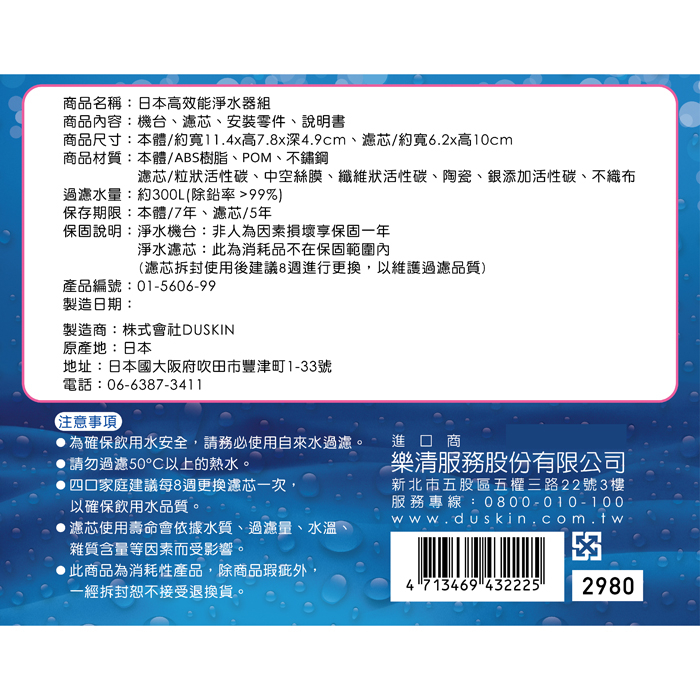 【DUSKIN樂清】日本高效能淨水器組/去除鉛、氯等13種雜質(本體+濾芯)【DUSKIN樂清】日本高效能淨水器組/去除鉛、氯等13種雜質(本體+濾芯)Water Filters, Coolers & DispensersDUSKIN 樂清(官方直營)