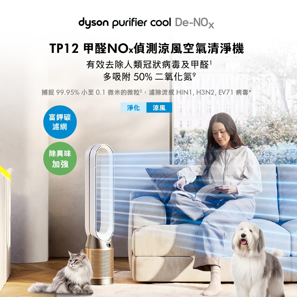Dyson Purifier Cool TP12 De-NOx 甲醛NOx偵測涼風空氣清淨機 原廠公司2年保固白金,贈原廠專用濾網x1|鎳金,贈原廠專用濾網x1|白金,贈原廠專用濾網x3|鎳金,贈原廠專用濾網x3|🔥七夕限定,白金單機優惠|🔥七夕限定,鎳金單機優惠Air Treatmentdyson戴森|恆隆行官方旗艦館