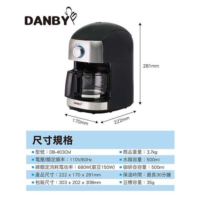 【DANBY 丹比】全自動磨豆咖啡機(DB-403CM)|自動研磨 豆粉兩用 公司貨【DANBY 丹比】全自動磨豆咖啡機(DB-403CM)|自動研磨 豆粉兩用 公司貨Coffee Machines & AccessoriesDANBY丹比家電旗艦館