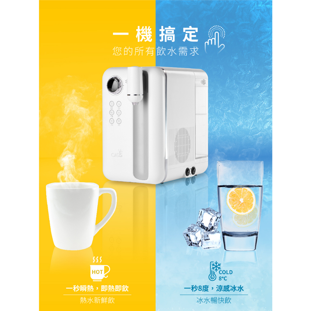 【美國OASIS】 Curve 瞬熱製冷 UVC 濾淨飲水機 淨水器 SGS檢驗 可生飲 免安裝 桌上型 13段可調溫主機(附1顆濾芯)|主機+贈3顆芯Water Filters, Coolers & DispensersCoway 台灣官方商店