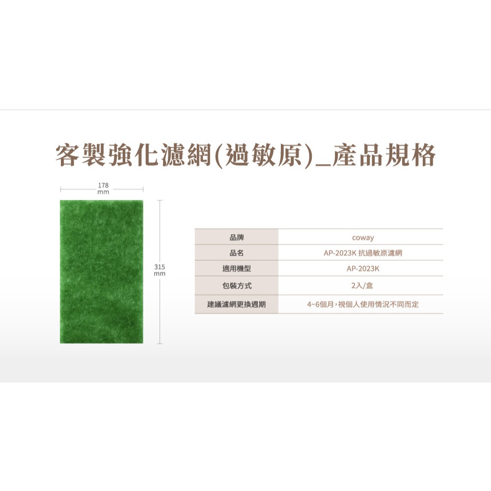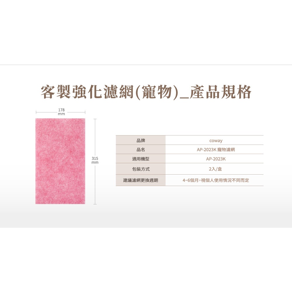 Coway 濾網 原廠耗材 客製強化濾網 適用 AP 2023 K AP-2023K 免運寵物濾網|抗過敏原濾網|除甲醛強化濾網Air TreatmentCoway 台灣官方商店