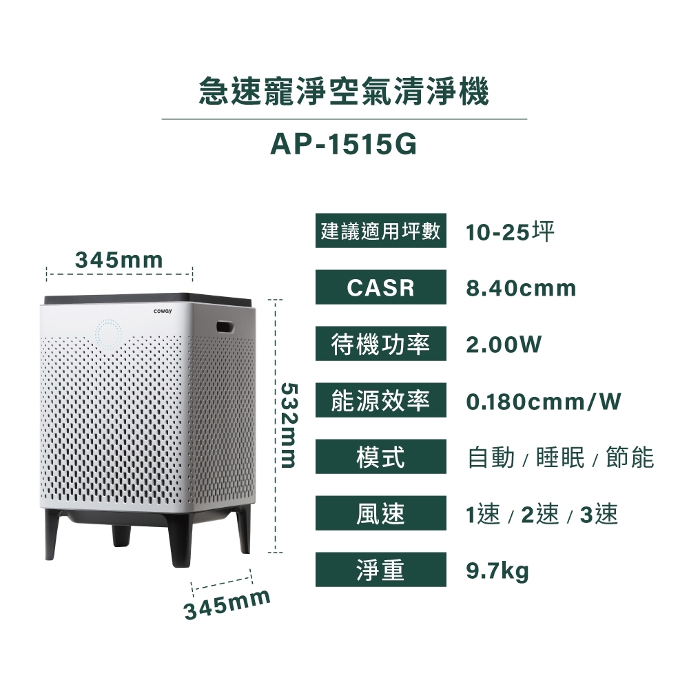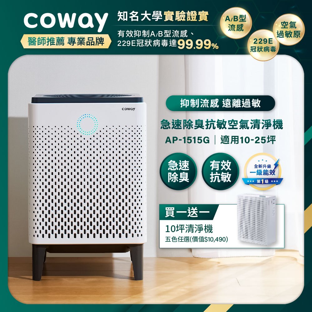 Coway 25+10坪雙機組空氣清淨機 AP 1515G+AP 1019C 抑制流感 一房一廳熱銷組