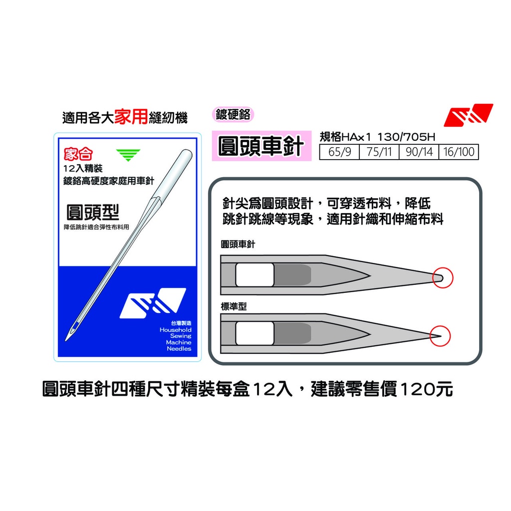 鍍鉻高硬度家庭用車針-圓頭型 縫紉機車針 車針 彈性車針 12入