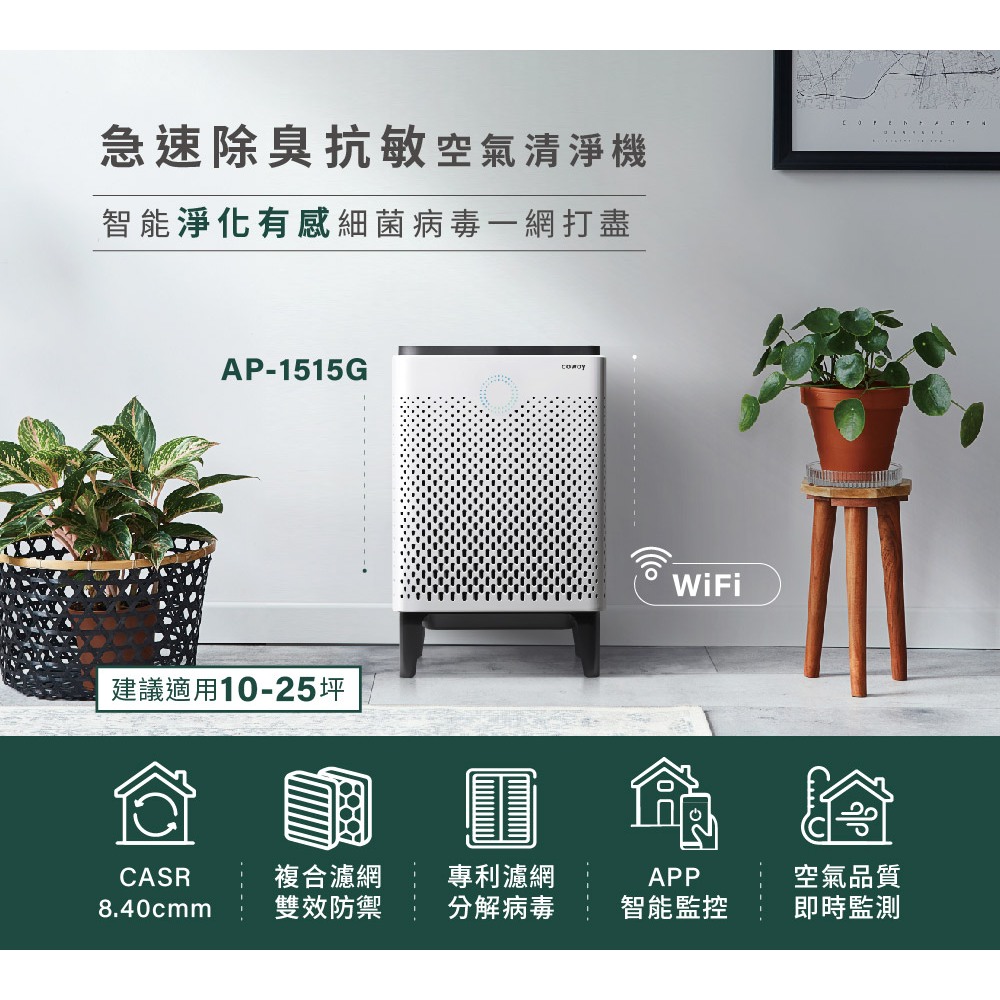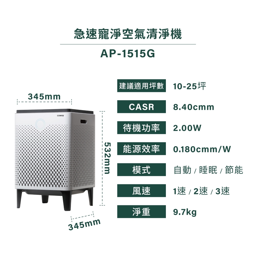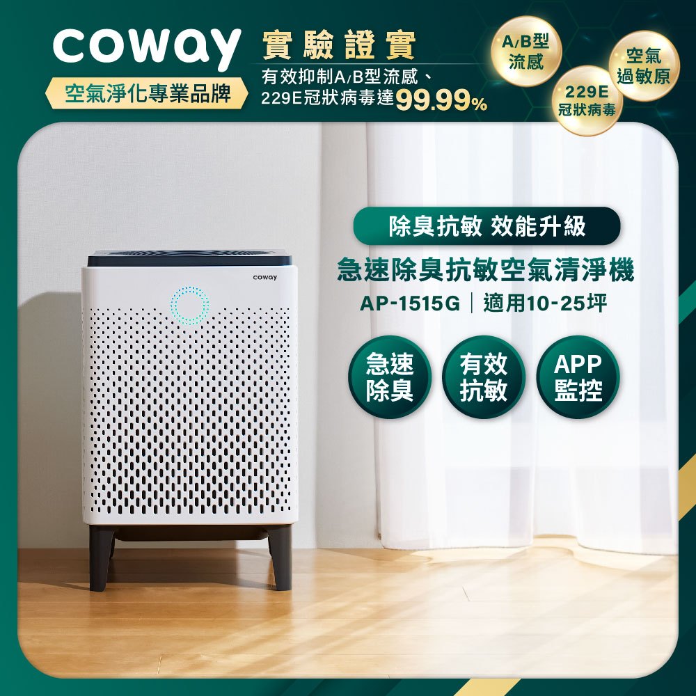 Coway 25坪急速除臭抗敏空氣清淨機 AP 1515 G 急速寵淨 寵物機 吸附毛髮 抑制流感 免運AP-1515G單機促銷|加贈一年份濾網Air TreatmentCoway 台灣官方商店