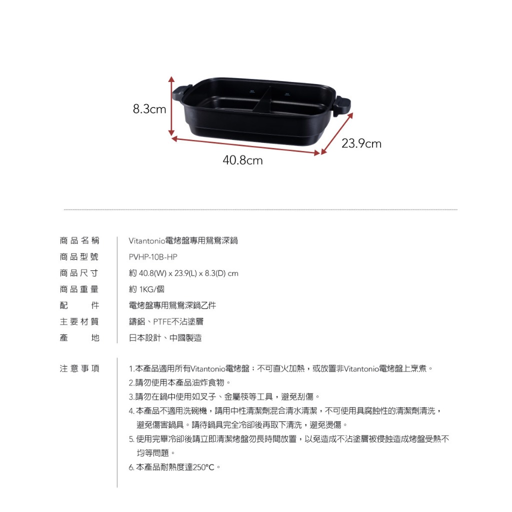 配件【日本Vitantonio】1.2L鴛鴦深鍋(電烤盤專用)PVHP-10B-HP配件【日本Vitantonio】1.2L鴛鴦深鍋(電烤盤專用)PVHP-10B-HPOtherse趣購商城