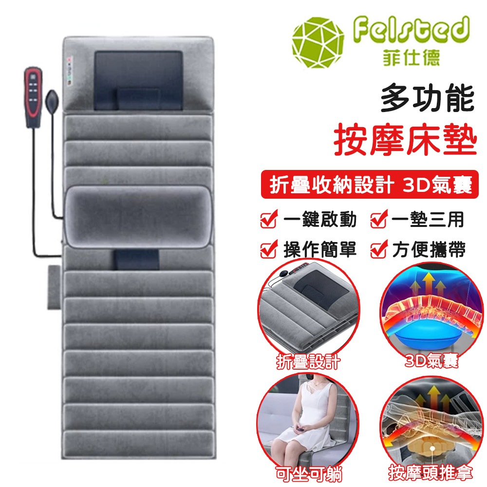 【Felsted 菲仕德】絨皮按摩床墊 多功能按摩床垫 腰部 背部 电动仪按摩床 按摩靠垫 絨布款按摩墊至尊版(絨布款)OthersFelsted菲仕德官方旗艦店_家電館
