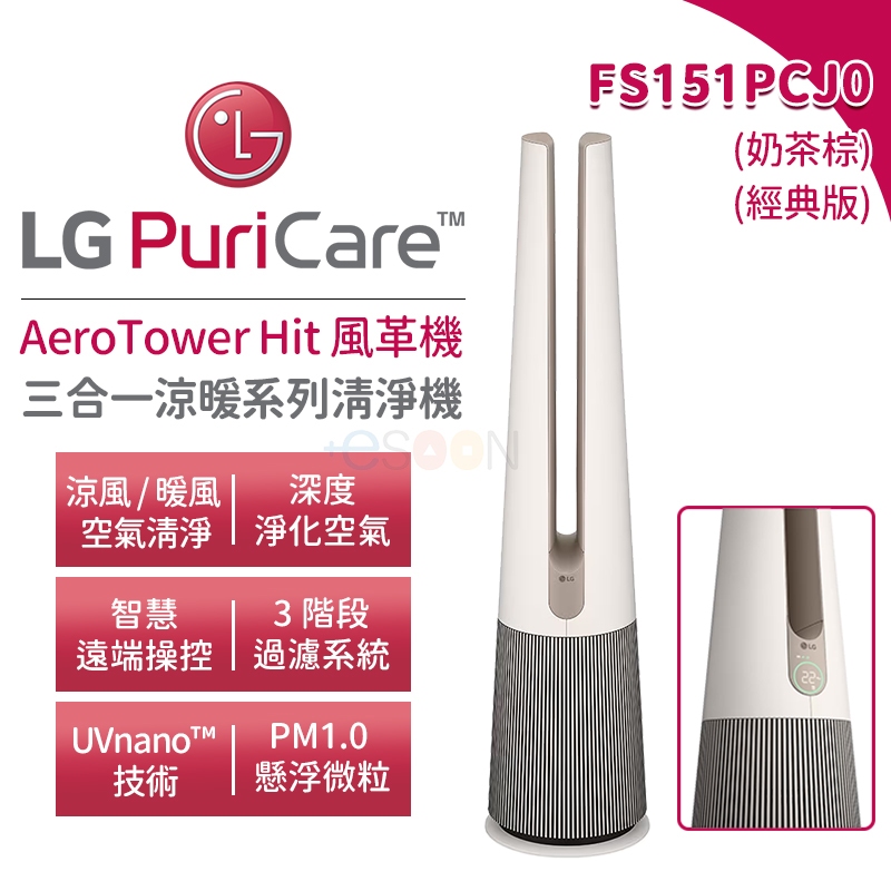 LG 樂金 AEROTOWER HIT 風革機 三合一涼暖系列清淨機 FS151PCJ0 現貨 經典版 奶茶棕 清淨機FS151PCJ0 風革機【原廠公司貨】Air Treatmentesoon量販3C電玩商城