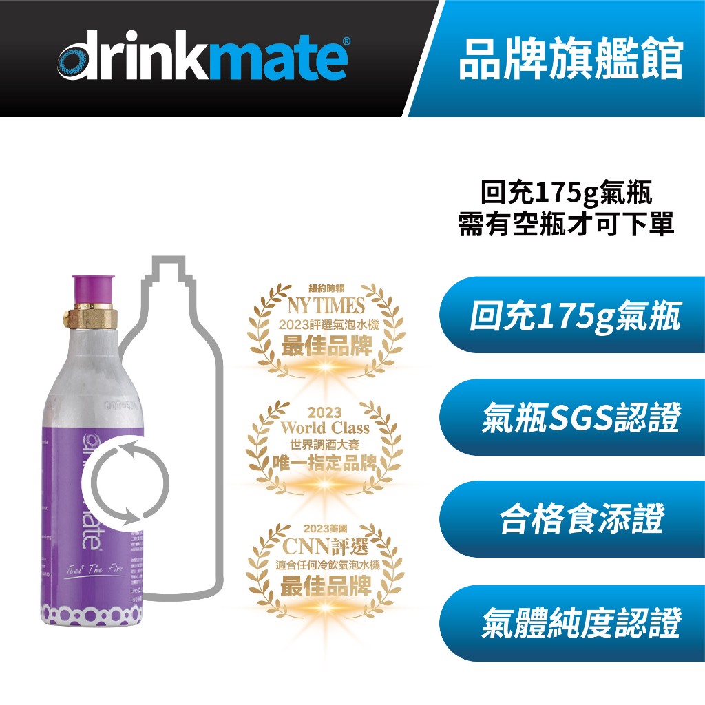 美國drinkmate 175g CO2氣瓶 宅配回充服務 (購買前請看商品詳情)美國drinkmate 175g CO2氣瓶 宅配回充服務 (購買前請看商品詳情)Specialty Cookwaredrinkmate | mosa官方旗艦館