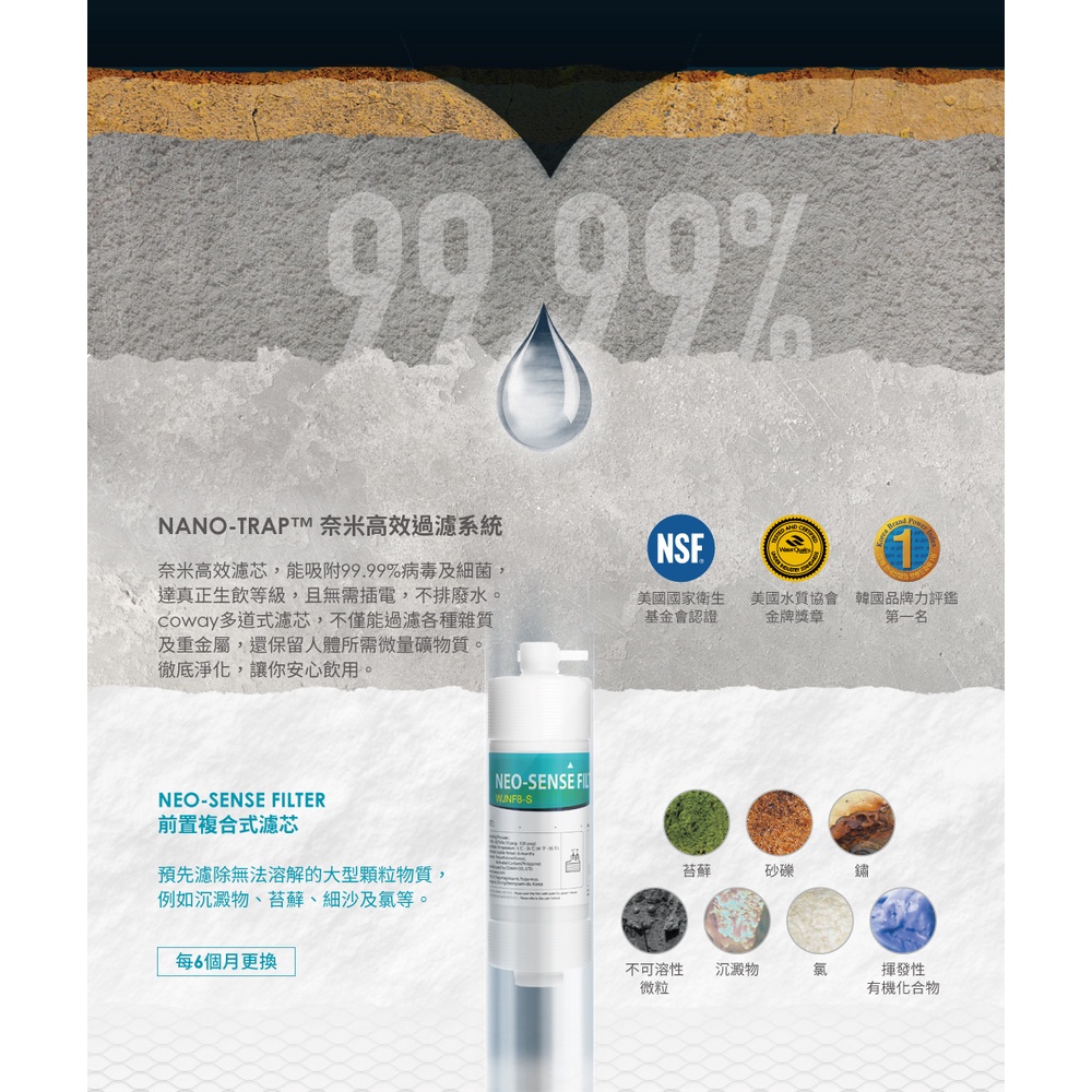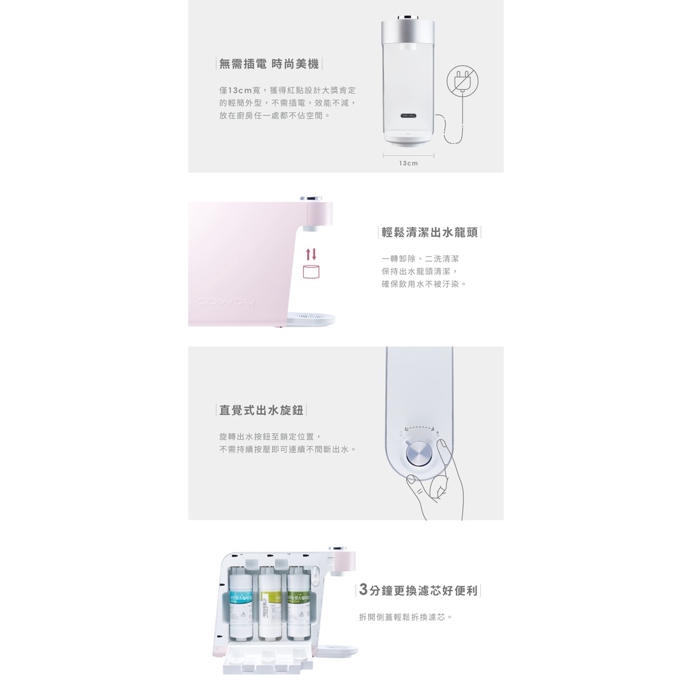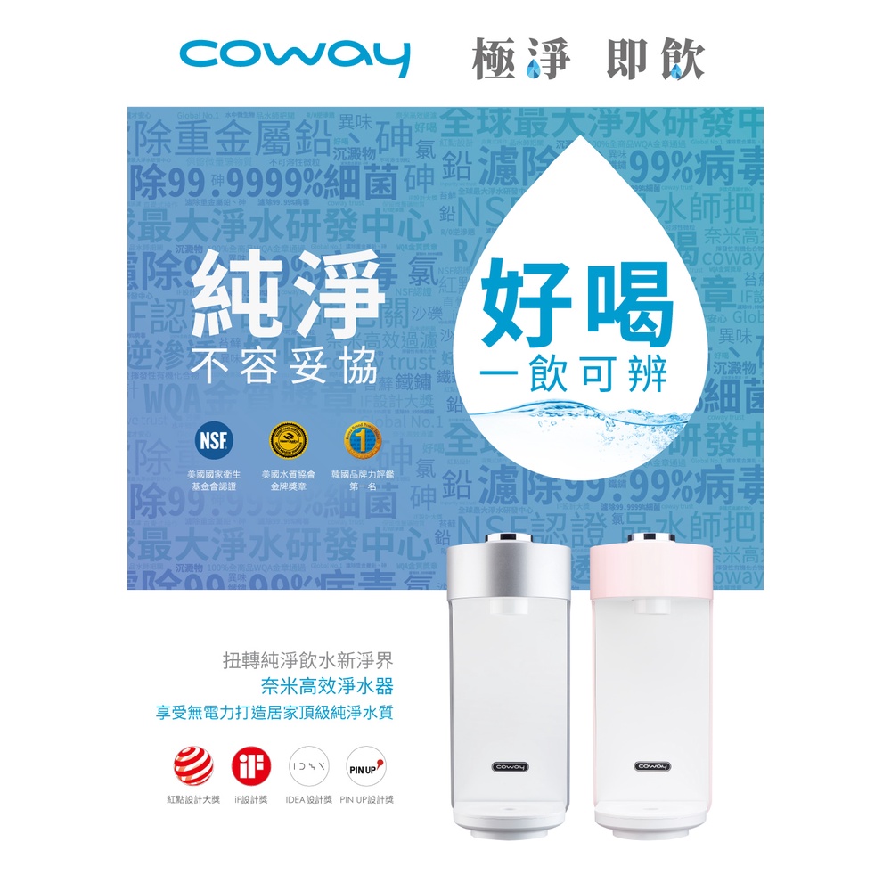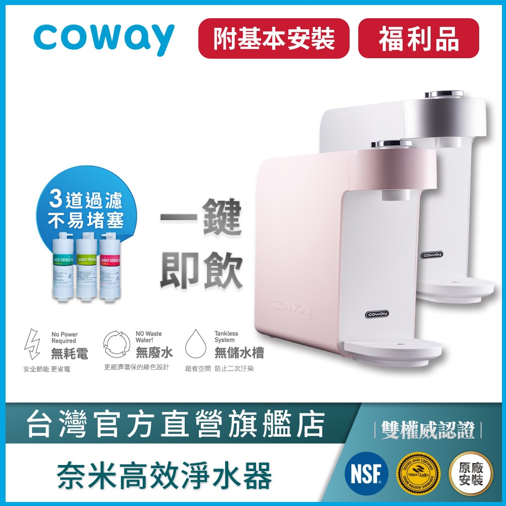 Coway 淨水器 A級福利品 免電 不排廢水 三道奈米濾芯過濾 P 350 N 含原廠到府基本安裝 原廠保固一年銀色|粉色Water Filters, Coolers & DispensersCoway 台灣官方商店