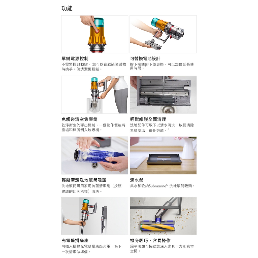 Dyson V12s SV46 Submarin 乾濕全能洗地吸塵器 旗艦款 黃色雙主吸頭 【限量福利品】領蝦皮券再折福利品贈原廠收納架Vacuum Cleaners & Floor Care Appliancesdyson戴森|恆隆行官方旗艦館