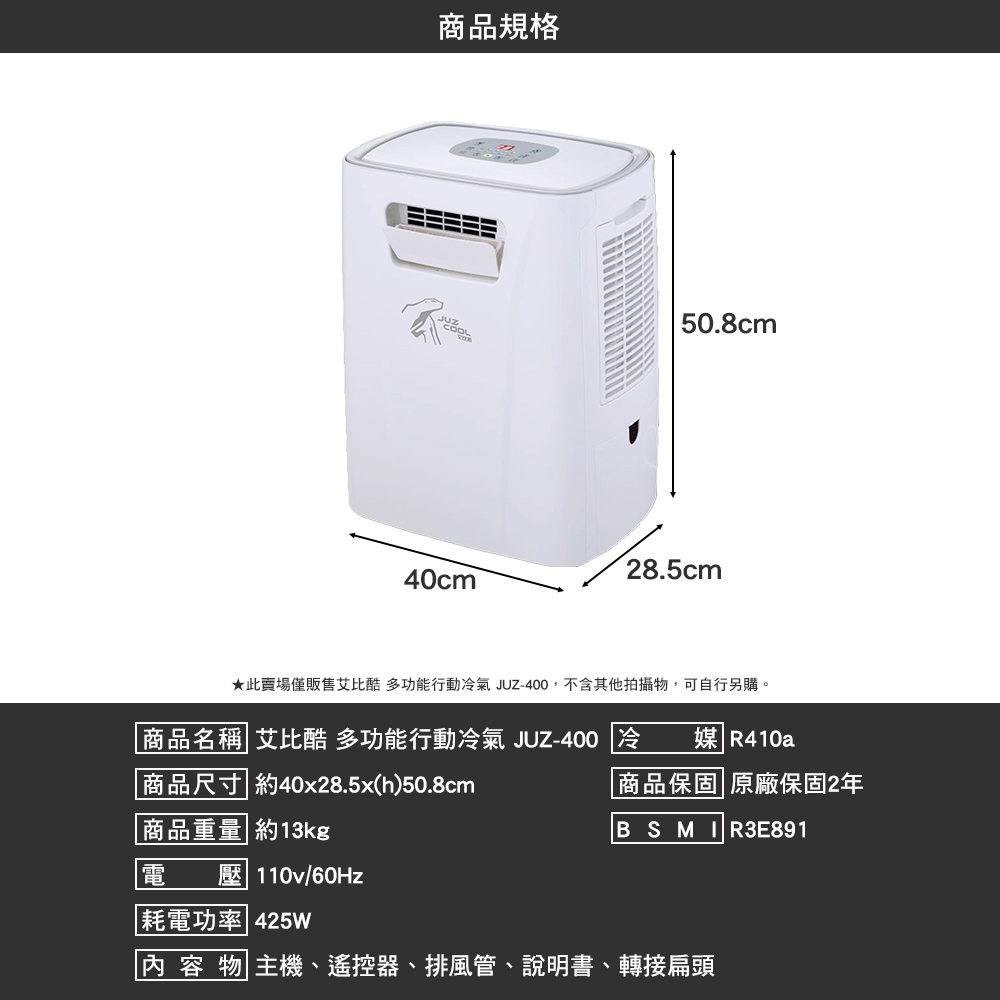 艾比酷 移動式冷氣 JUZ-400 行動冷氣 露營冷氣 兩年保固 BSMI R3E891 露營艾比酷移動式冷氣-JUZ400CoolingCAMP WORLD 逐露 天下 露營 登山 生活 商城旗艦店