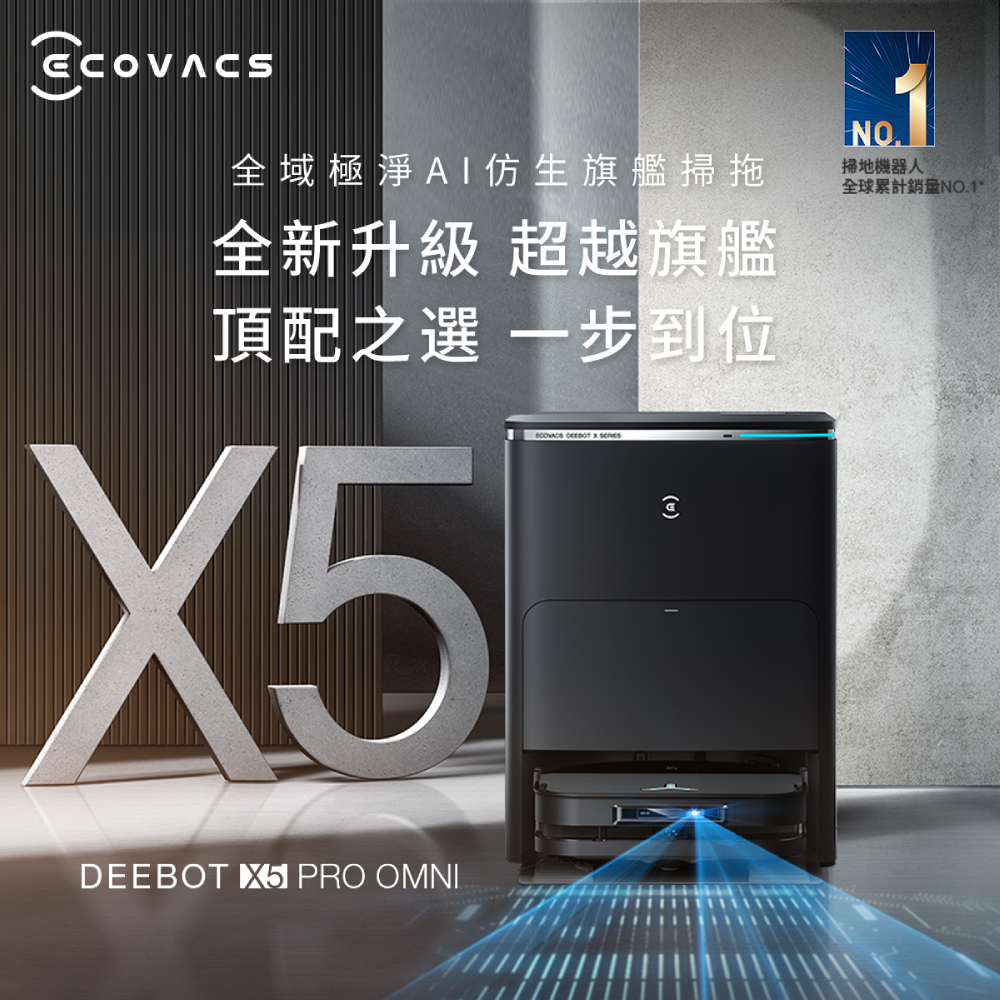 ECOVACS科沃斯 全新 X5 PRO OMNI全域極淨AI仿生旗艦掃拖機器人(零纏繞/髒汙偵測/邊角清潔)X5 PRO OMNIVacuum Cleaners & Floor Care AppliancesECOVACS 科沃斯 官方旗艦店