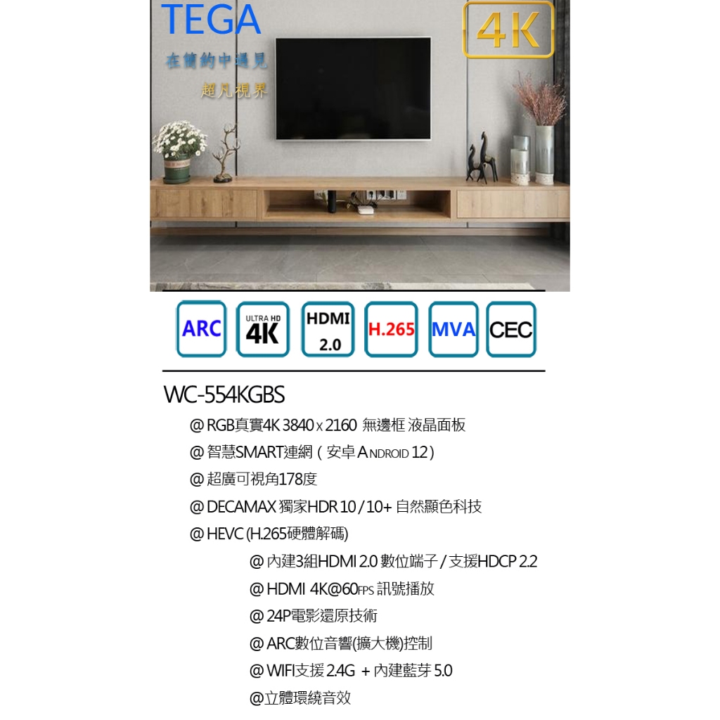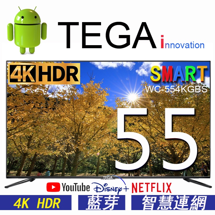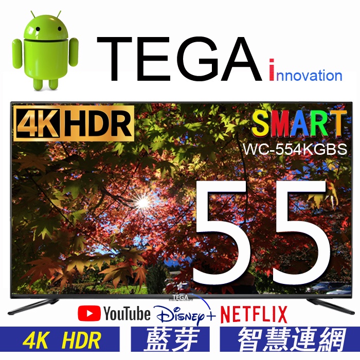 TEGA 55吋 4K HDR 無邊框聯網液晶電視顯示器 安卓 android 12 藍芽 (WC-554KGBS)55吋 本島 (非偏遠地區)TVsDecaMax 網路旗艦店