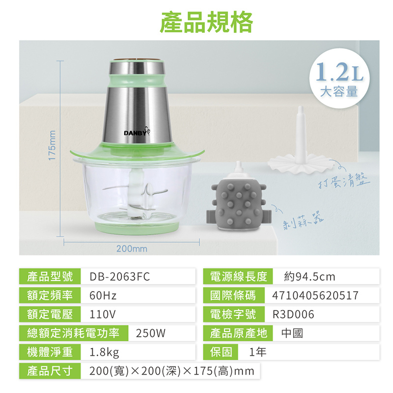 【DANBY丹比】四枚刃多功能食物料理機(DB-2063FC)|切碎 絞肉 剝蒜 奶昔 碎冰 寶寶副食品【DANBY丹比】四枚刃多功能食物料理機(DB-2063FC)|切碎 絞肉 剝蒜 奶昔 碎冰 寶寶副食品Food Processors & Meat GrindersDANBY丹比家電旗艦館