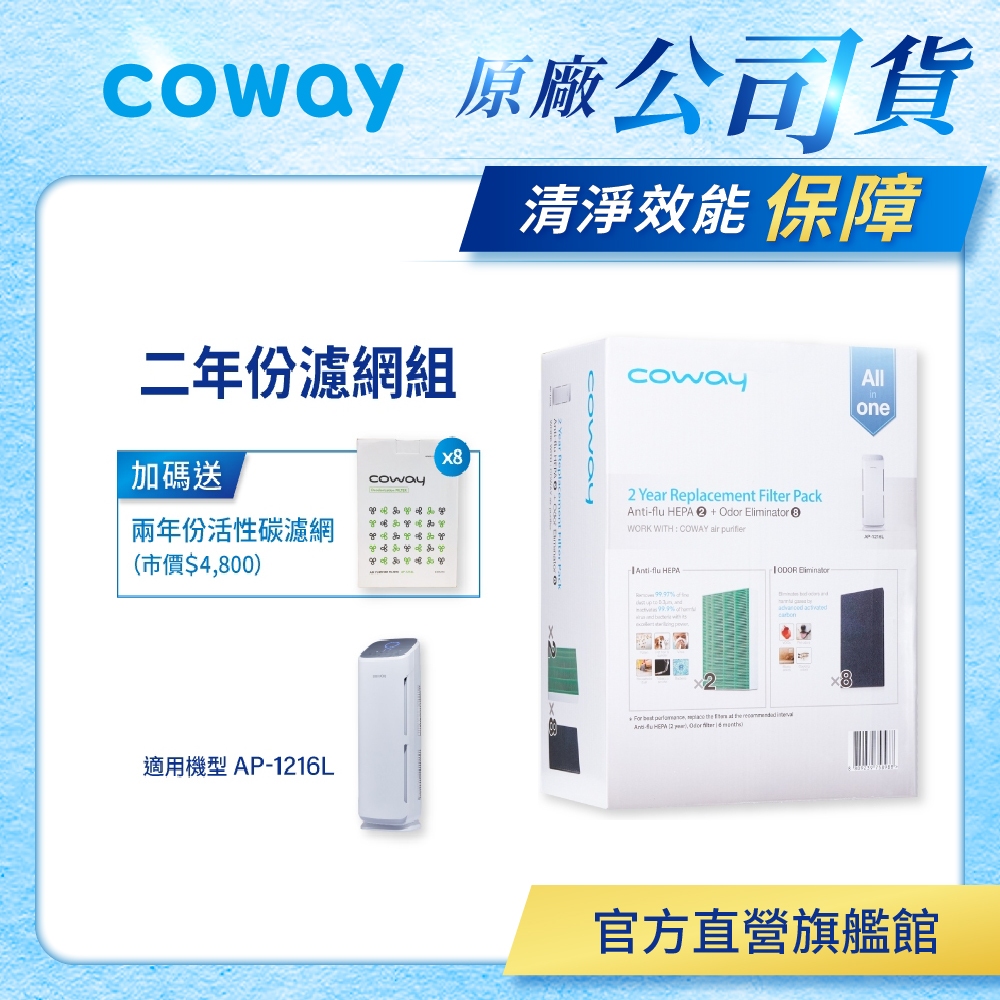 Coway 濾網 原廠耗材 二年份濾網組 適用 AP 1216 L 空氣清淨機 加贈活性碳濾網八片 免運+贈兩年份活性碳濾網(共八片)Air TreatmentCoway 台灣官方商店