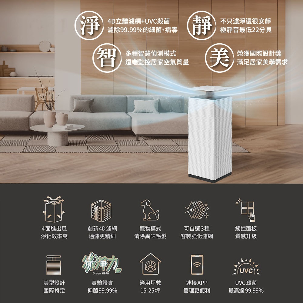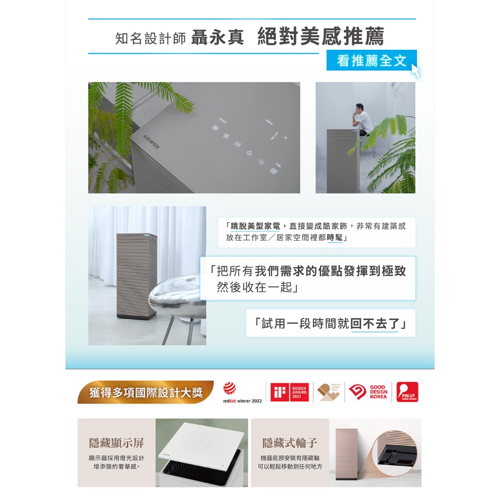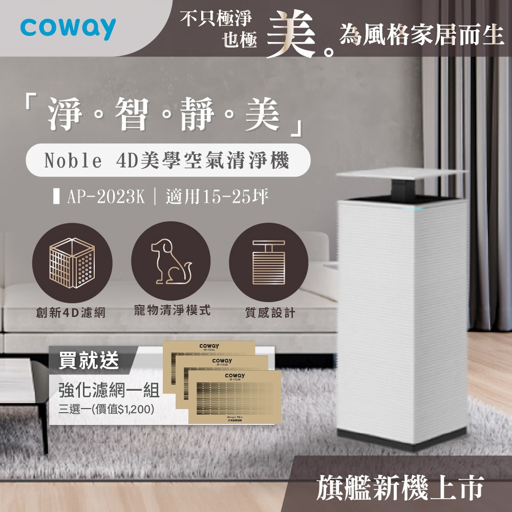 Coway 25坪 Noble 4D美學空氣清淨機 AP 2023 K 質感雙色 抑制流感 送強化濾網 AP-2023K