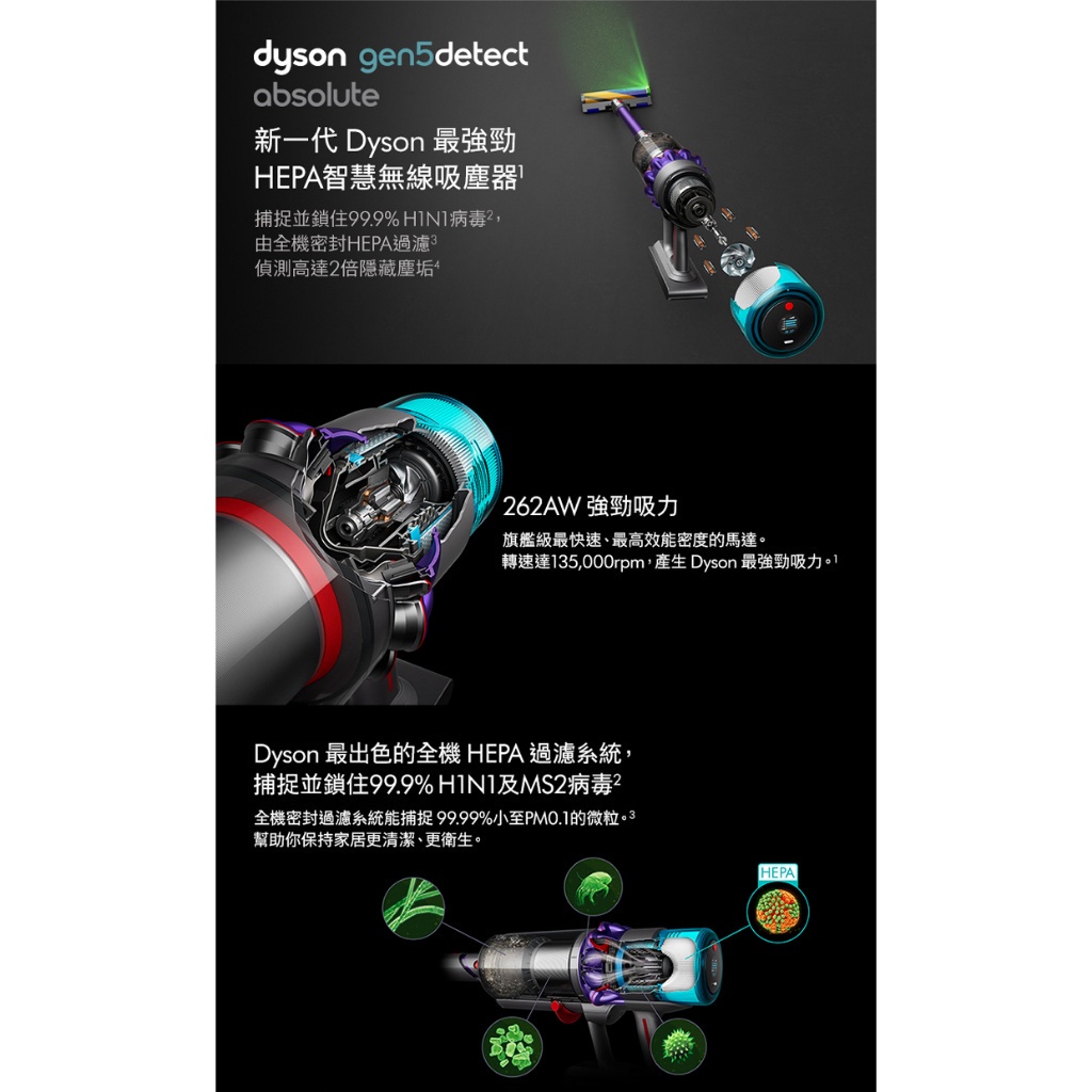 Dyson Gen5 Detect Absolute SV23 最強勁吸力HEPA智慧吸塵器 原廠公司貨2年保固贈收納架Vacuum Cleaners & Floor Care Appliancesdyson戴森|恆隆行官方旗艦館