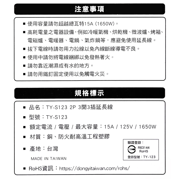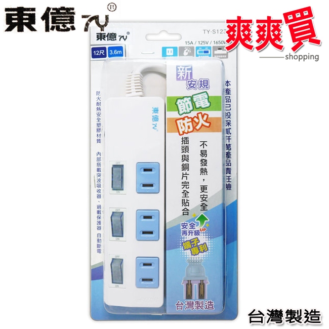東億2孔3開關3插座延長線 TY-S123-6尺/TY-S123-8.25尺/TY-S123-12尺TY-S123-6尺|TY-S123-8.25尺|TY-S123-12尺Electric Sockets & Extension Cordseasy to buy『爽爽買』