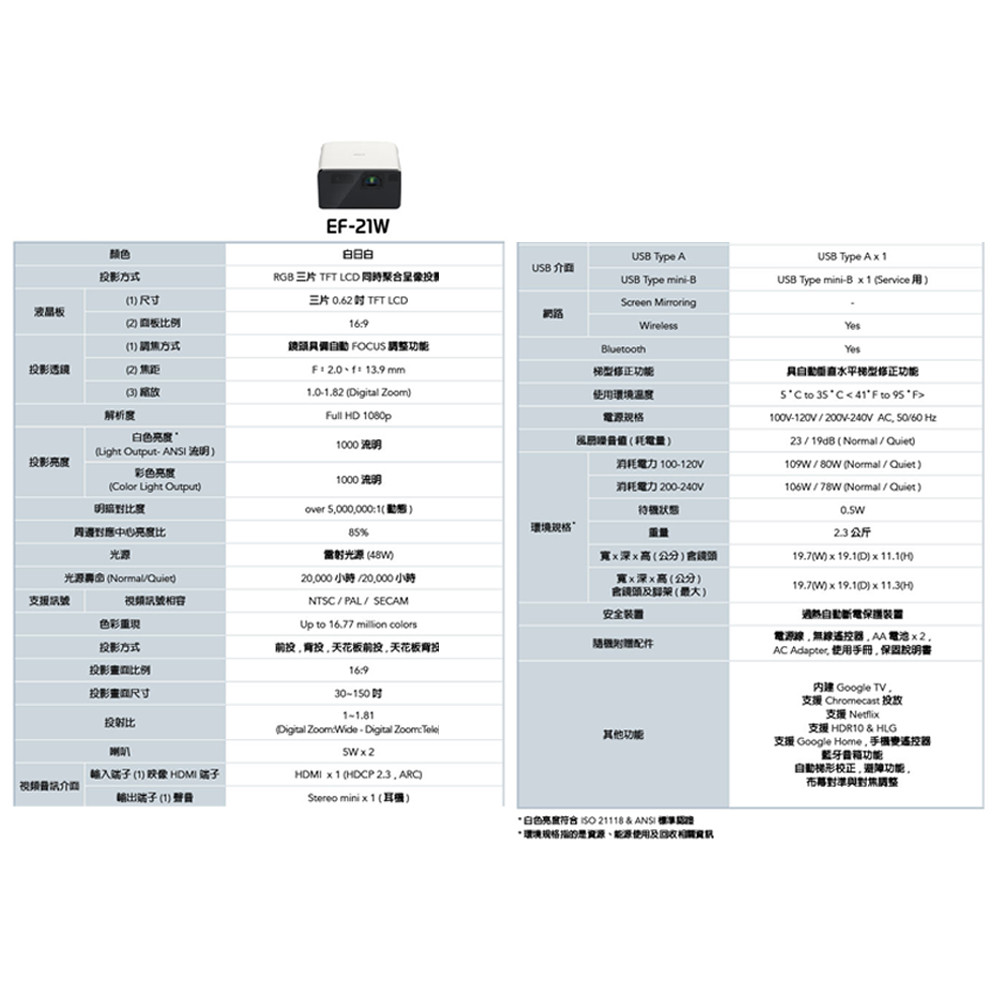 EPSON EF-21W Full HD智慧迷你雷射投影機 白日白送專用包+回饋金 公司貨EPSON EF-21W Full HD智慧迷你雷射投影機 白日白送專用包+回饋金 公司貨Projectors & Projector ScreensEPSON 官方旗艦店